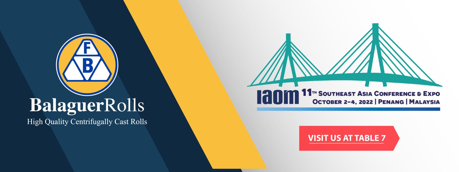 Balaguer Rolls est fier d’annoncer sa participation à la prochaine IAOM SEA qui se tiendra du 2 au 4 octobre 2022 au Southeast Asia conference & Expo, Penang, Malaisie.
