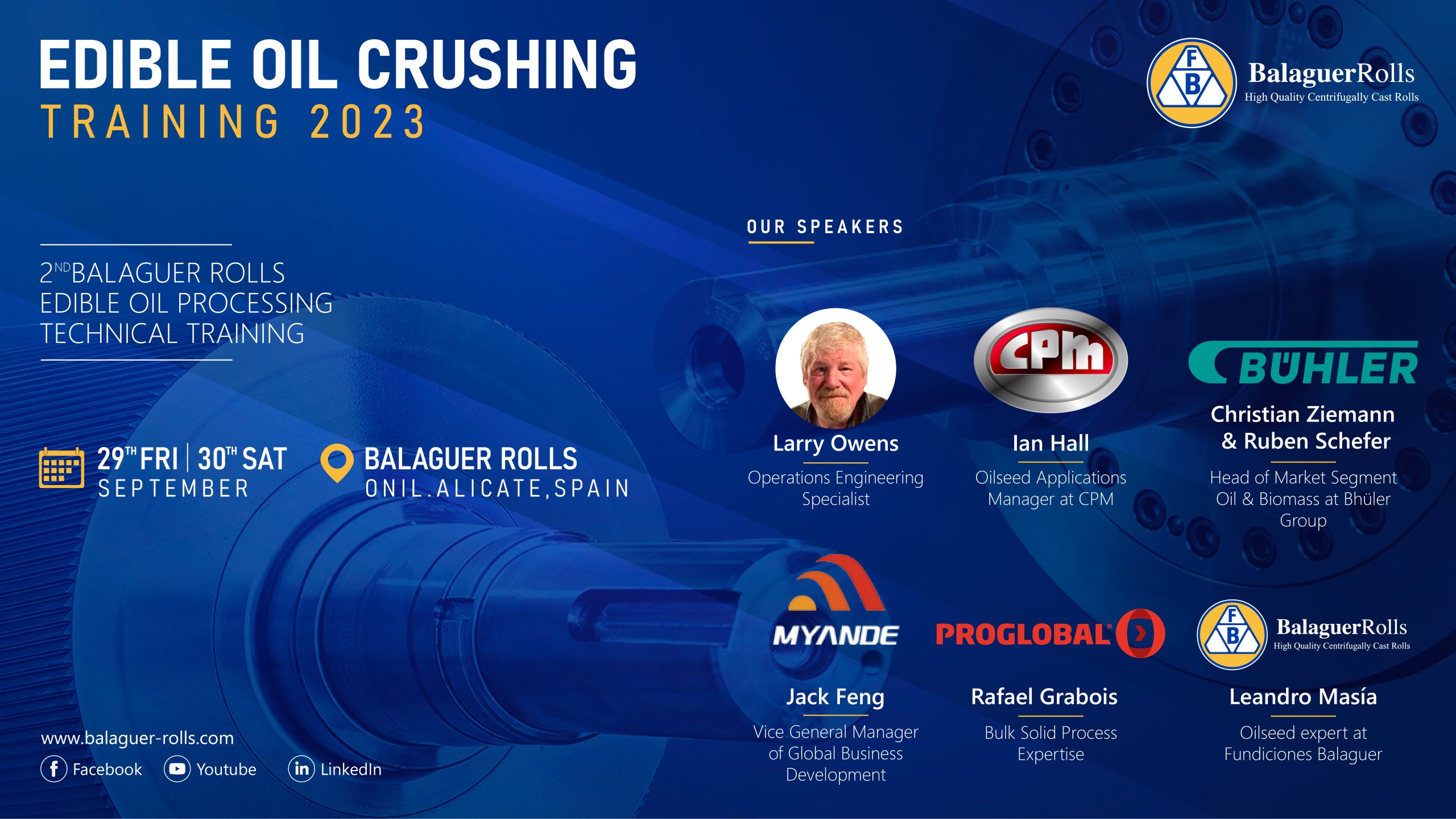 We are pleased to announce the upcoming technical training on edible oilseed crushing! From September 29th to 30th, we will bring together industry experts to